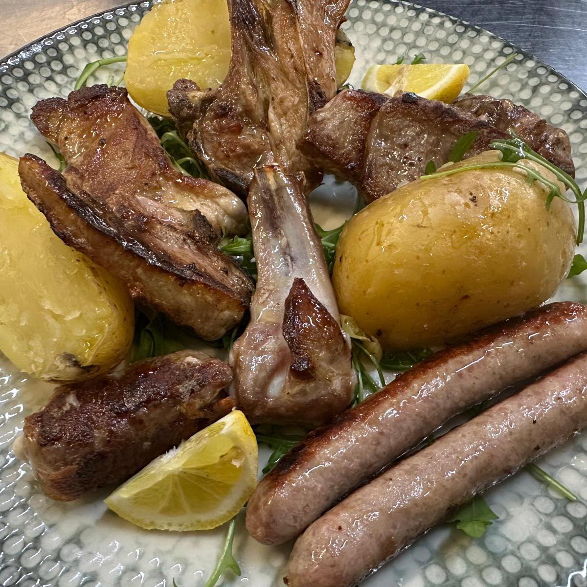 Misto di carne alla brace: agnello, marretti, bombette, capocollo, salsiccia.