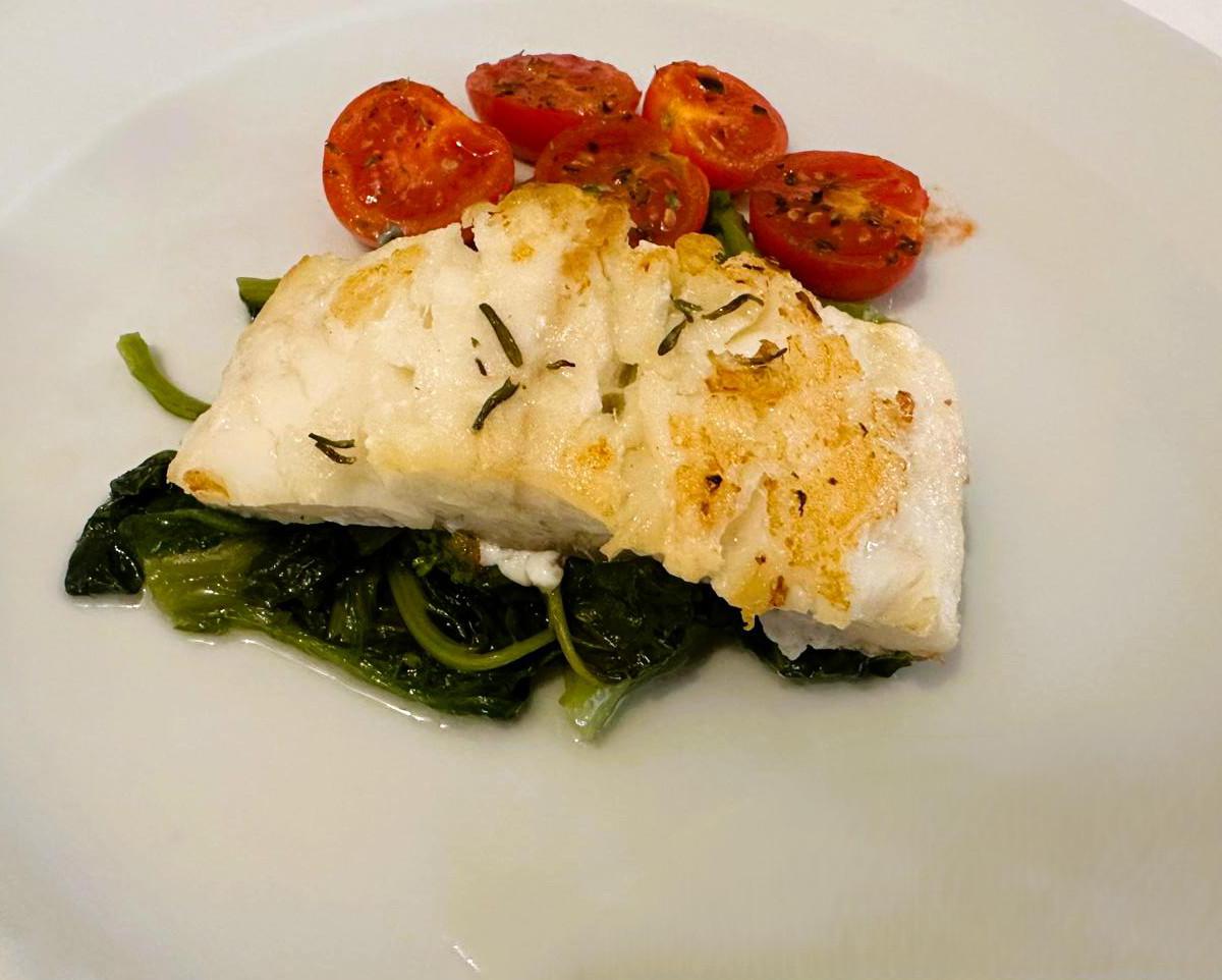 Filetto di baccalà e cime di rape stufate